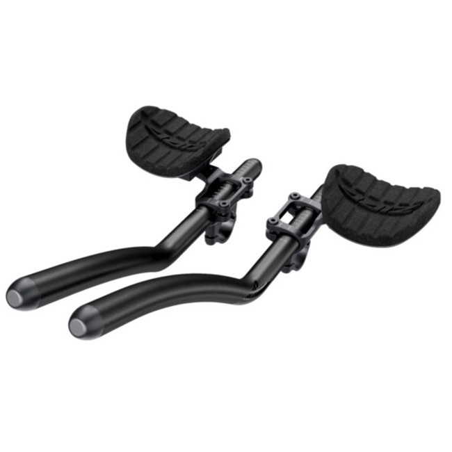 Acoples Zipp Vuka Alu con clip alto y extensiones Evo 110 de aluminio para triatlón y contrarreloj. Ofrecen un ajuste, seguridad y adaptabilidad excelentes, con cableado interno y compatibilidad con la mayoría de las extensiones.