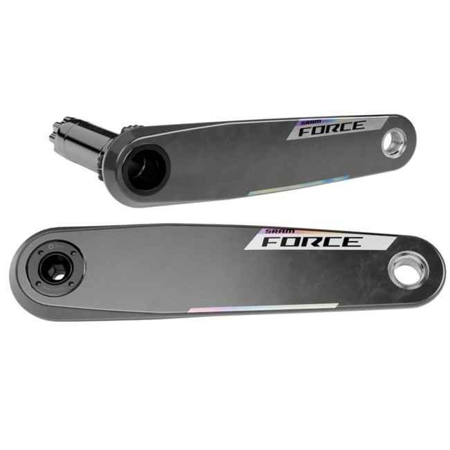 Las bielas SRAM Force AXS destacan por sus brazos de fibra de carbono ultraligeros con un elegante acabado brillante, diseñadas para ofrecer el máximo rendimiento a ciclistas de carretera, gravel o triatlón que buscan eficiencia y fiabilidad.