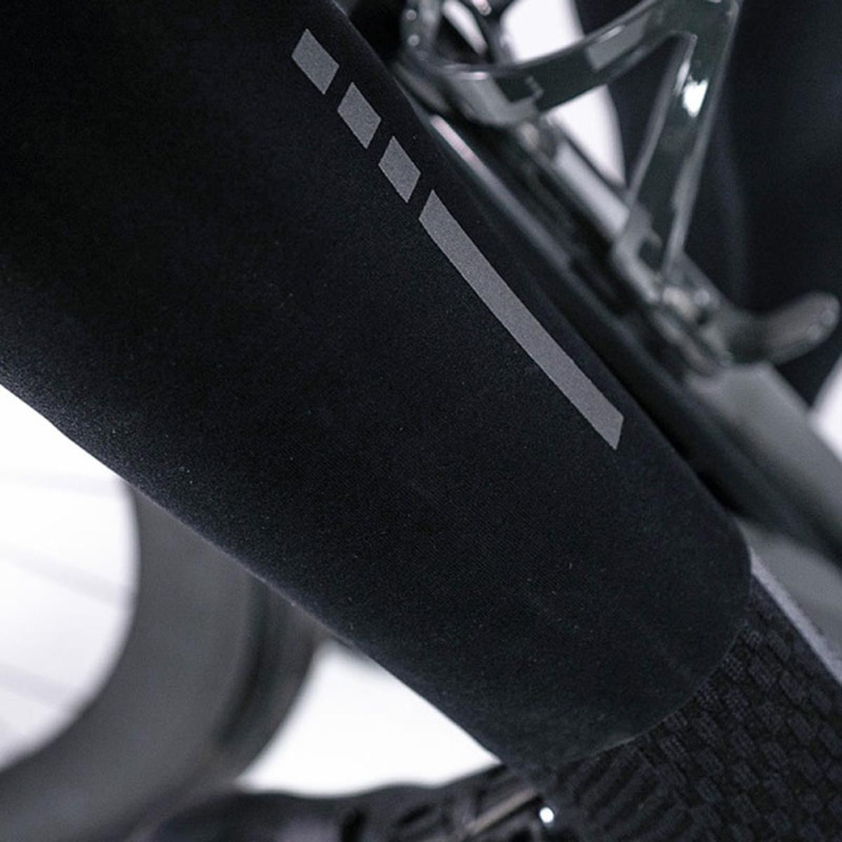 Al final de las piernas tiene una banda elástica con un grip de silicona hipoalergénica en su interior. Ésta mantiene la prenda bien sujeta a la pierna. En la zona posterior tiene un detalle reflectante que aumentará tu seguridad ya que reflejará la luz de los vehículos.