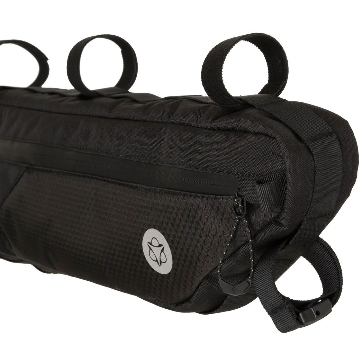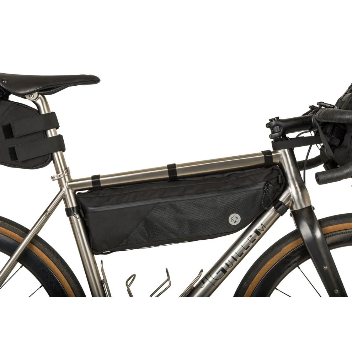 Auf langen Reisen oder beim Tragen von Gegenständen wird der komfortable und geräumige Venture Frame Pack ein wesentlicher Bestandteil Ihrer Ausrüstung sein. Dank eines modularen Riemensystems lässt es sich schnell am Oberrohr befestigen und passt sich problemlos an die meisten Rahmen auf dem Markt an.