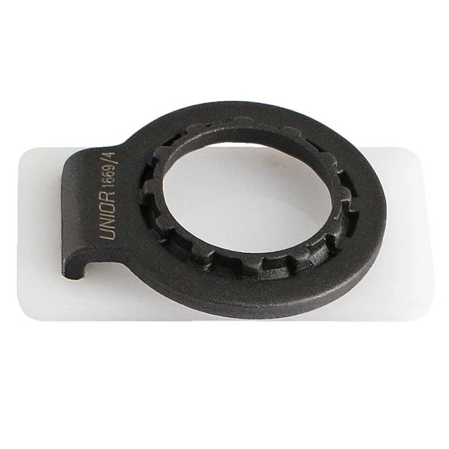 Herramienta esencial para ciclistas: llave de piñones y radios Unior. Permite el cambio de radios rotos tras extraer el cassette. Fabricada en acero al carbono Premium Flex Plus con acabado ennegrecido.