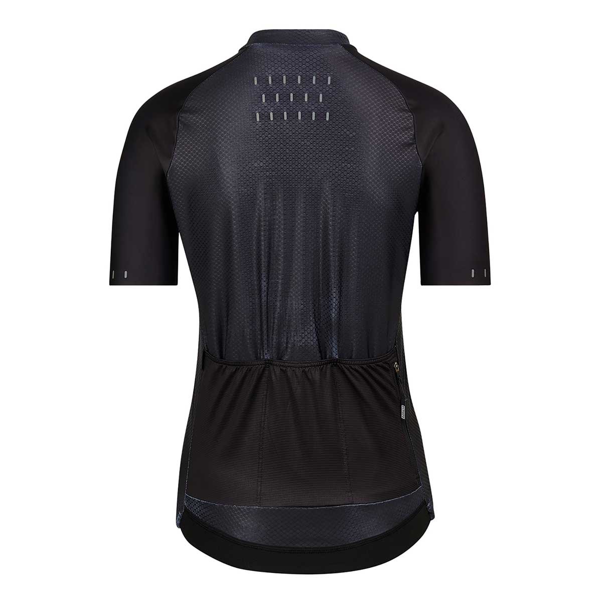 Maillot de manga corta para ciclismo en carretera con protección UV, tejido transpirable de secado rápido y detalles reflectantes para una mejor visibilidad. Ajuste cómodo y tres bolsillos traseros abiertos más uno con cremallera.
