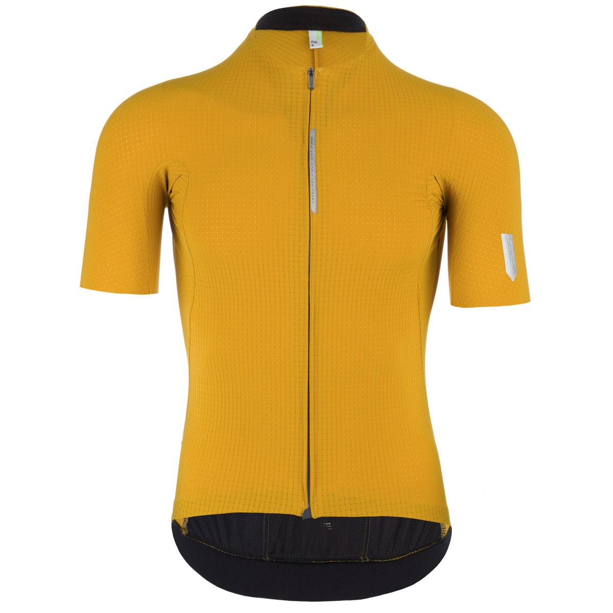 • Gracias a la especial textura del tejido y a la parte delantera sin costuras, este maillot penetra en el viento con una gran eficiencia aerodinámica, especialmente a velocidades entre 40 y 59 km/h