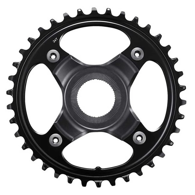 Plato Shimano SM-CRE80-B de 34 dientes para transmisiones de 10/11 velocidades. Su tecnología Dynamic Chain Engagement+ mejora la retención de la cadena y suaviza el pedaleo en terrenos difíciles.