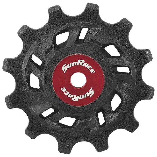 Roldana trasera SunRace SP857. Repuesto para transmisiones de 12 velocidades. Color negro.