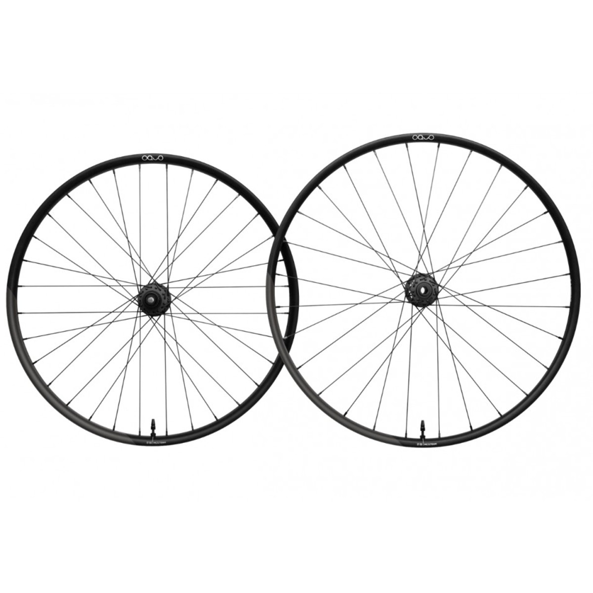 Juego de ruedas Oquo MC32TEAM Shimano MS Set Mullet, con llantas asimétricas hookless y bujes DT350. Mayor resistencia, comodidad y rendimiento optimizado para la parte delantera y trasera.
